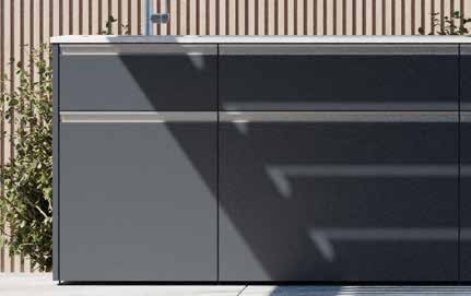 La cuisine d’extérieur peut être équipée des fonctionnalités suivantes : une plaque de cuisson à gaz ou à induction, un réfrigérateur, des lumières LED, un évier, un support pour bouteille de gaz (bouteille de gaz non incluse), un bac à déchets coulissant, une prise d’eau et d’électricité, et une housse de protection. De plus, vous pouvez compléter le modèle sélectionné avec un barbecue autonome.